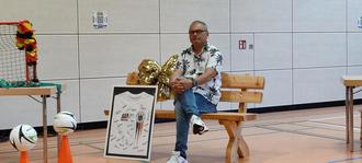 Unvergessen waren natürlich auch die von ihm organisierten Abschlussfahrten. Gemeinsam war ihnen, dass es immer ans Meer ging – sei es nach Italien oder Kroatien. Bleibend sind die Anekdoten, die davon berichtet wurden. Schulleiterin Andrea Kohl erinnerte daran, dass Günther Höfer eine der treibenden Kräfte war, als es galt, den M-Zweig in Gößweinstein einzuführen und zu etablieren. Dies war ihm ein Herzensanliegen, denn so eröffnete er zahlreichen Schülerinnen und Schülern bis heute die Möglichkeit, die mittlere Reife heimatnah in Gößweinstein zu erwerben. Natürlich kam auch seine Liebe zum Fußball in den Ansprachen und Darbietungen der Feier nicht zu kurz. In Fußballerkreisen war er als „Zambo“ bekannt und fungierte zunächst als Spieler, bevor er seine Trainertätigkeit in zahlreichen Vereinen in und um Bayreuth aufnahm. Natürlich mussten montags im Lehrerzimmer mit den jährlich weniger werden männlichen Kollegen dann auch immer die Bundesligaergebnisse diskutiert werden.