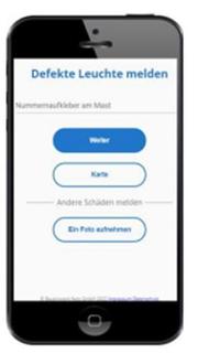Das Melden von Straßenbeleuchtungsschäden erfolgt ganz einfach über die Auswahl der