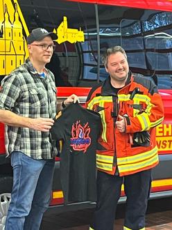 Erfreut waren nicht nur die Jungs und Mädels der Jugendfeuerwehr, auch das Betreuerteam mit Jugendwart Michael Feiler, freute sich sehr über die neuen Klamotten und bedankte sich im Namen aller Jugendlichen für die großzügige Spende bei Martin Wölfel.