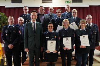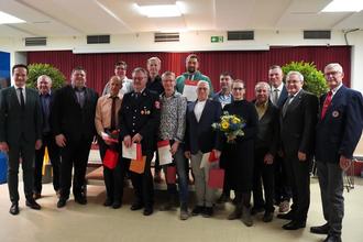 Anschließend wurden dann verschiedene Bürgerinnen und Bürger ausgezeichnet; den Auftakt machten traditionell die staatlichen Feuerwehrehrungen, die Landrat Florian Töpper ein letztes Mal in Röthlein mit Kreisbrandrat Holger Strunk durchführte, dessen Amtszeit laut Töpper von "hoher Professionalität" geprägt war. Strunk lobte in seiner Abschiedsrede die gute Nachwuchsarbeit in den drei Röthleiner Ortsteilwehren, aber auch anderen Vereinen; wichtiges Erleben, so der scheidende Kreisbrandrat, des „sozialen Miteinanders“ von Kindesbeinen an.