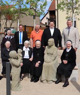 Der Platz vor dem Klostertor war gut gefüllt, die Sonne schien mit voller Kraft, als die neue Skulptur einer Kindergartenschwester feierlich eingeweiht wurde. Die Statue erinnert an das jahrzehntelange Wirken der Erlöserschwestern in Heidenfeld – im Kindergarten, in der Sozialstation, in der Krankenpflege und in der Seelsorge.