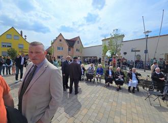 Schwestern aus dem Pflegeheim in Heidenfeld sowie eigens angereiste Mitschwestern aus dem Mutterhaus in Würzburg nahmen ebenso an der Feier teil wie zahlreiche Bürgerinnen und Bürger. Auch Gemeinderätinnen und Gemeinderäte waren vertreten – allen voran Zweiter Bürgermeister Martin Weth und Dritter Bürgermeister Florian Kreß. Ihre Anwesenheit zeigte: Die Segnung war ein Anliegen der gesamten Gemeinde und des ganzen Ortes.