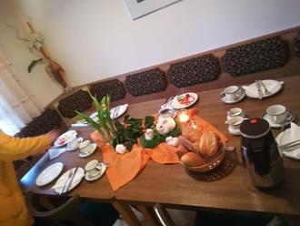 Anschließend beim gemeinsamen Frühstück, am schön gedeckten Tisch, stärkten wir uns für das Kommende.