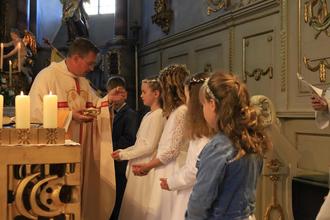 Die Kommunionkinder aus Heidenfeld und Hirschfeld möchten sich herzlich bedanken für die zahlreichen Glückwünsche und Geschenke zu ihrer 1. Heiligen Kommunion.