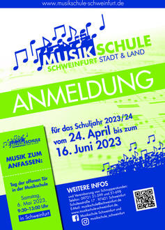 Neuinteressenten melden sich bis spätestens 16. Juni im Sekretariat der Musikschule Schultesstr. 17 an. Über die Homepage www.musikschule-schweinfurt.de ist die Anmeldung sicher und bequem auch von daheim aus möglich. Die Altschüler der Musikschule bekommen die Unterlagen für ihre Weitermeldung von ihrem jeweiligen Instrumentallehrer und geben sie nur diesem zurück.