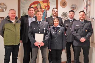 Kreisbrandinspektor Florian Zippel ehrte den verdienten Feuerwehrmann mit Urkunde und Abzeichen und lobte sein wertvolles Engagement für die Allgemeinheit - ein wichtiger, ehrenamtlicher Dienst, der Leben rettet, wie auch Bürgermeister Peter Gehring es noch einmal betonte.