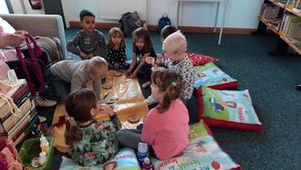 Dieses Grimmsche Märchen wurde mit der Erzählschiene den Kindern erzählt und vorgespielt. Aufmerksam hörten die Kleinen zu. Dazu passend konnten die Kids ein eigenes Rapunzel basteln. Die mit zuhörenden Mütter halfen beim Flechten des langen Zopfes für das Rapunzel(Gott sei Dank). Anschließend wurde natürlich noch weiter vorgelesen.