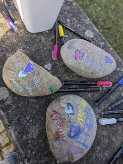 In den letzten Wochen wurde es bunt bei uns, es wurden die Fenster dekoriert, Steine verschönert und viel gemalt und gebastelt.