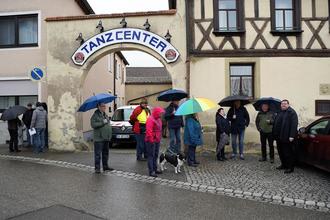 Dorfbegehung im Regen - hier vor dem ehemaligen Tanzcenter in Heidenfeld.