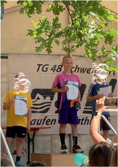 Der Schülerlauf startete um 12:00 Uhr. Die jungen Läuferinnen und Läufer absolvierten in ihren grünen Schul T-Shirts dabei eine Strecke von 1,3 Kilometern entlang des Schweinfurter Baggersees und der Kleingartenanlage. Alle teilnehmenden Grundschüler/Innen zeigten im Lauf eine Spitzenleistung. Yanne Braun aus der 4a erzielte sogar den 1.Platz in der Gesamtwertung und war damit der Sieger des Schülerlaufes.