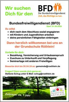 | • | Der Bundesfreiwilligendienst richtet sich an alle Menschen, die sich ein Jahr lang im sozialen Bereich engagieren und dabei Lebenserfahrungen sammeln und etwas Gutes tun möchten. An der Grundschule hast du die Möglichkeit dich mit deinen Interessen und Fähigkeiten am Vormittag im Unterricht und am Nachmittag in der Ganztagsbetreuung der Schulkinder einzubringen. |