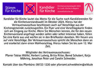 Kurzfristige Änderungen und aktuelle Informationen finden Sie auf unserer Homepage www.schwebheim-evangelisch.de.
