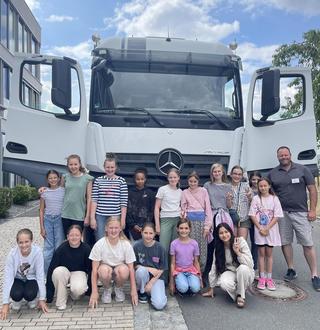 „Wie sieht denn euer Schulweg an die MRS in Volkach aus?“, fragte Dirk Märkert, Inhaber der WM Fahrschule, die Mädchen der fünften Klassen vor Kurzem, als sie zu Besuch in der Fahrschule waren. Eifrig malte jede Einzelne ihren Weg auf und stellte ihn anschließend vor. Schon hierbei wurde allen bewusst, an welcher Stelle man ganz besonders vorsichtig sein sollte und da viele der Kinder mit dem Bus am Busbahnhof in Volkach ankommen, wurde im Speziellen der Fußweg von dort zur Schule besprochen. Jeder leuchtete schnell ein, dass der Weg durch die verkehrsberuhigte Kühgasse aus versicherungstechnischen sowie Sicherheitsgründen vorzuziehen ist. Auch das sichere Überqueren der Straße am Zebrastreifen besprach der Fahrlehrer mit den Mädchen und sie erkannten, wie wichtig es ist, vor dem Loslaufen stets Blickkontakt zu den Autofahrern aufzunehmen. Wieso man dabei zuerst nach links schaut, wurde ihnen an Hand eines Rollenspiels deutlich. Auch wenn der nachgestellte „Crash“ zunächst zum Lachen anregte, verstand doch jede die Intention dahinter. Das Highlight an diesem Tag war jedoch, als die Fünftklässlerinnen in den Fahrschul-LKW steigen durften und als „Fahrer“ durch die Windschutzscheibe blickten. „Ich hätte nicht gedacht, dass man gar nicht sieht, wenn jemand direkt vor dem Lastwagen steht, weil man doch eigentlich so eine gute Aussicht hat von hier oben“, meinte ein Mädchen, das zwar über den toten Winkel schon Bescheid wusste, aber zugab, beim Ein- und Aussteigen in bzw. aus dem Schulbus bisher nicht immer daran gedacht zu haben, die Gefahrenbereiche um so ein großes Fahrzeug möglichst zu meiden. Sicher wird das nach dieser Erfahrung in Zukunft anders sein. Wir bedanken uns daher herzlich bei Herrn Märkert von der WM Fahrschule in Volkach für sein Engagement im Rahmen der Verkehrserziehung an der MRS.