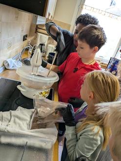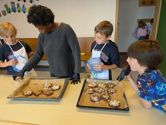 Sara hat mit den Kindern im Pfarrheim die Küche erobert und aus Kakao, Marzipan, Kakaobutter und Milchpulver Schokolade hergestellt. Mit köstlichen Zutaten wurde diese verziert und mit Nüssen und Marzipan verfeinert. In Formen gefüllt und im Kühlschrank gekühlt konnte jeder sein Kontingent an Schokolade mit nach Hause nehmen. Die Schokolade hat wahrscheinlich nicht lange überlebt.