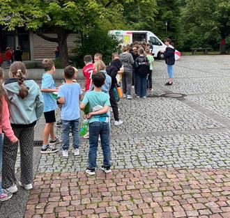Pünktlich zur ersten Pause kam das Eismobil auf den Schulhof gefahren. Jedes Kind durfte sich eine Kugel Eis nach Wunsch aussuchen – ein süßer Start in den Schultag und ein guter Start in die Sommerferien, der bei allen für strahlende Gesichter sorgte.