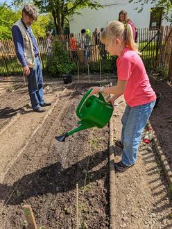 Die Kinder lernten in den zwei Stunden durch aktive Mitarbeit verschiedene Pflanztechniken kennen, wie tief bestimmte Pflanzen eingepflanzt werden müssen und dass man kleinere Samen vor dem säen mit Sand vermischt. Außerdem war es interessant zu lernen, welchen Abstand die Jungpflanzen voneinander haben müssen, welche Pflanzen gut zusammen ins Beet passen, wie wichtig das Gießen ist und dass alle Gartengeräte im Anschluss wieder an ihren Platz müssen.