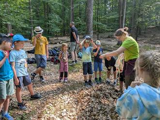 Mit einer Försterin sind wir in den Wald gezogen und haben Tiere und Bäume erkundet. Spielerisch haben wir den Zusammenhang erforscht. Spannend wurde es als die Kinder ihr eigenes Tier aus Naturmaterialien schufen.