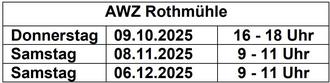 Im Folgenden findet sich eine Auflistung, wann die stationäre Problemmüllsammlung an der Kompostanlage Gerolzhofen bzw. am Abfallwirtschaftszentrum (AWZ) Rothmühle stattfindet: