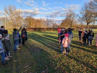 Bei sonnigem Wetter fand am 03. Januar der Natur-Aktiv-Tag der kommunalen Jugendarbeit (KoJa) für Kinder der Großgemeinde Röthlein am Sportplatz in Heidenfeld statt. Organisiert wurde die Veranstaltung durch Alexis Lender, Angelika Götz und Stefanie Schug. Mit insgesamt 30 Teilnehmerinnen und Teilnehmern von sechs bis zehn Jahren war sie voll ausgebucht.