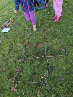 Neben Tannenzapfen- und Stockweitwurf konnten sich die Teilnehmer in einer Olympiade auch im Weitsprung beweisen und beim Legen von Mandalas und einem Hüpfspiel aus verschiedenen Naturmaterialien war ihre Kreativität gefragt. Am Ende durften alle Kinder ihre eigene Holzmedaille gestalten, die sie beim Abholen stolz ihren Eltern präsentierten und anschließend mit nach Hause nehmen konnten.