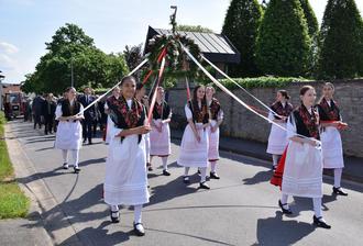 Ein beeindruckender Festzug zog bei schönstem Wetter durch den Ort, angeführt von der Musikkapelle „Die Jungen Sennfelder“ und den elf Ehrendamen in Sennfelder Arbeitstracht, die die Siebener-Krone begleiteten. Der verstorbenen Feldgeschworenen gedachte Ortsobmann Fritz Ludwig in der Friedhofskapelle.