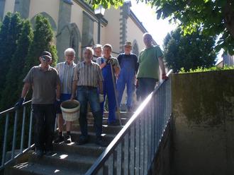Vor Pfingsten und dem Abschiedsfest für Weihbischof Paul Reder wurde der Pfarrgarten hinter der Kirche und der Bereich um die Kirche von emsigen Männern gesäubert, die Büsche geschnitten und das Umfeld in Ordnung gebracht. Vielen Dank und ein vergelte es Gott.