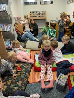 Die erwachsenen Besucher konnten sich umschauen und auch entleihen, Kaffee trinken und sich unterhalten. Für Alle gab es Käse- und Streuselkuchen.