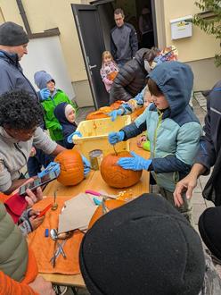 Zum Kürbis aushöhlen kamen die Familien und schafften miteinander. Jede Familie durften ihren Kürbis mitnehmen und natürlich an Halloween aufstellen.