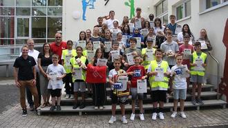 Jetzt seien sie für Schule, Freizeit und Zuhause gut ausgebildet. Brätz machte auch auf das Ehrenamt des Rettungssanitäters aufmerksam. Den Jugendlichen übergab er zusammen mit Ausbilder Rainer Hörmann den Rettungsrucksack mit Decke, Kuscheltieren zum Trösten, Warnwesten und kleine Verbandskästen.