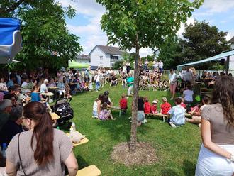 Der Höhepunkt des Festes war der Auftritt der Kinder, in welchem sie als Forscher, Bienen, Marienkäfer und Ameisen deren Lebensraum näherbrachten.