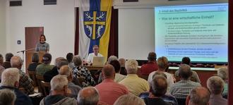 Über 130 Bürgerinnen und Bürger haben sich in der Mehrzweckhalle Heidenfeld eingefunden. Darunter durfte Bürgermeister Peter Gehring auch Paul Knoblach MdL begrüßen der sich ein Bild von der Schulung vor Ort machen wollte.