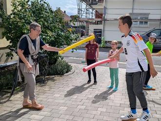 Mit dem DreiBeinRennen wurde die Teamfähigkeit getestet.