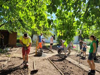 Insgesamt waren ca. 20 Erwachsene und 24 Kinder im Einsatz um Unkraut zu entfernen, Büsche, Sträucher und Bäume zu schneiden, die Beete umzugraben und mit neuer Erde zu befüllen sowie den Geräteschuppen vom Staub und Dreck der letzten Jahre zu befreien.