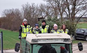 Mit 2 Traktoren und ganz vielen fleißigen Helfern haben wir Heidenfeld und Hirschfeld noch vor dem Mittagessen christbaumfrei gemacht.
