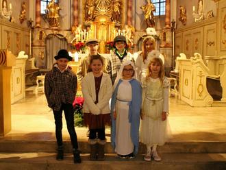 Die sieben Kommunionkinder aus Heidenfeld gestalteten am Heiligabend den Weg von Maria und Josef nach Betlehem in der Kinderkrippenfeier