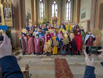 Die Feier wurde von den Sternsingerinnen mitgestaltet. Zum Abschluss wurden sie ausgesandt, um den Segen zu den Familien in alle Häuser und Wohnungen zu bringen.