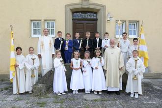 Am Samstag, den 16. Juli durften zehn Kommunionkinder ihre Erste Heilige Kommunion in der St. Laurentiuskirche in Heidenfeld feiern.