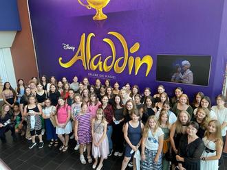 Am vorletzten Tag vor den Sommerferien bot sich für die Schülerinnen der Mädchenrealschule Volkach die Gelegenheit, das Musical Aladdin in Stuttgart zu besuchen. Über 50 Schülerinnen hatten sich zu diesem Anlass festlich herausgeputzt. In Stuttgart angekommen, war noch Zeit für einen kleinen Imbiss, bevor der Gong ertönte und die Vorstellung begann. Die Mädchen lauschten zwei Stunden fasziniert den Gesängen und ließen sich von den farbenfrohen Kostümen und Bühnenbildern in die märchenhafte Welt des Orients entführen. Auf der Rückfahrt schwärmten alle mit strahlenden Gesichtern von dem atemberaubenden Erlebnis und tauschten sich über die jeweiligen Lieblingsszenen aus.