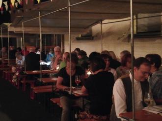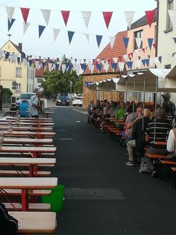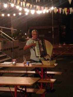 Zum Auftakt des Pfarrfestes in Röthlein spielte am Samstagabend Albrecht Hofmann mit seinem Akkordeon zum Dämmerschoppen. Wirtshauslieder, bekannte Volksweisen und Frankenlieder sangen die vielen Besucher begeistert zur Musikbegleitung.