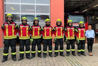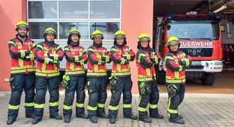 Die Feuerwehr Heidenfeld freut sich mit den „7 Zwergen“ (im Bild von groß nach klein) und gratuliert zur bestandenen Prüfung!