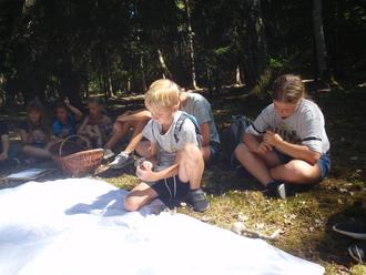 Am Seil entlang und mit Augenbinden durften die Kinder den Zauberwald betreten.