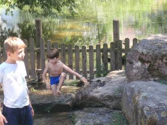 Ein Springbrunnen läuft als Wasserlauf in die Saale. Dort war unser liebster Aufenthalt.