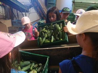 Jede*r pflückte den Korb voll Gurken. Zurück am Hof schauten wir zu wie die geernteten Gurken in der Sortieranlage verschwanden. Dann ab in die Waschmaschine. Als diese sauber herausfielen waren wir erleichtert.