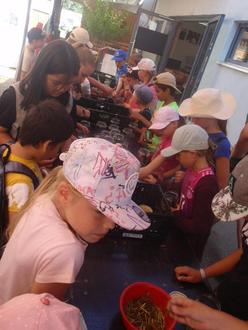 Die Kinder stürzten sich auf die Körbe und los ging es aufs Feld.