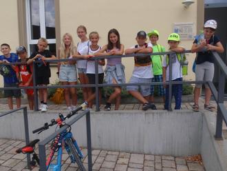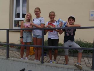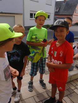 Dienstag früh war Dorfrallye in Röthlein angesagt. Die Kinder bekamen einen Laufzettel mit Bildern und Angaben, wie gelaufen werden soll. Die letzten Instruktionen an der Bibliothekstür und los ging es.