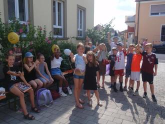 Schulleiterin Alexis begrüßte die Zauberschüler zur außerordentlichen Schulstunde an der Bibliothek in Röthlein.