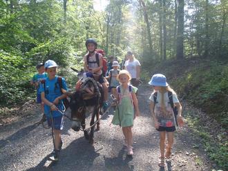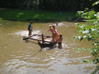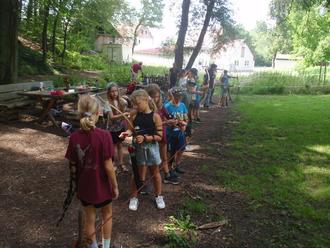 Auf Esels Rücken und mit Proviant ausgerüstet fanden wir uns am Waldspiel platz ein. Dort konnten wir Floß fahren, im Wasser plantschen, die Spielgeräte erklettern, ein Amulett her stellen und uns aufpäppeln für den weiten Weg zurück in die „Burg“ zur Bogenschießanlage. Dort wurden die Kinder in die Kunst des Bogenschießens eingewiesen.