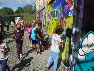 Zum Abschluss durften alle sprayen. Wie das ist mit dem Graffiti? Ein selbst gespraytes Bild durften alle mit nehmen.