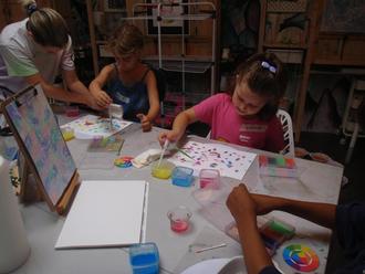 An der Staffelei versuchten sich einige Kinder mit fantasievollen Bildern.