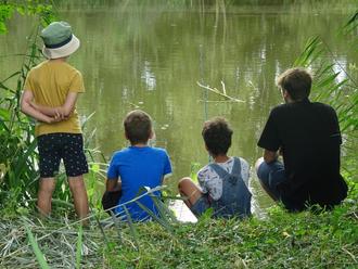 Erst musste man/frau den See finden. Jetzt ging es an eine idyllischen Stelle am See. Nach der Begrüßung durch Jürgen Lorenz folgte die Einweisung im Umgang mit der Angel. Danach durften die Kinder selbst angeln. Die Rotfedern waren zu neugierig und wurden herausgeholt.